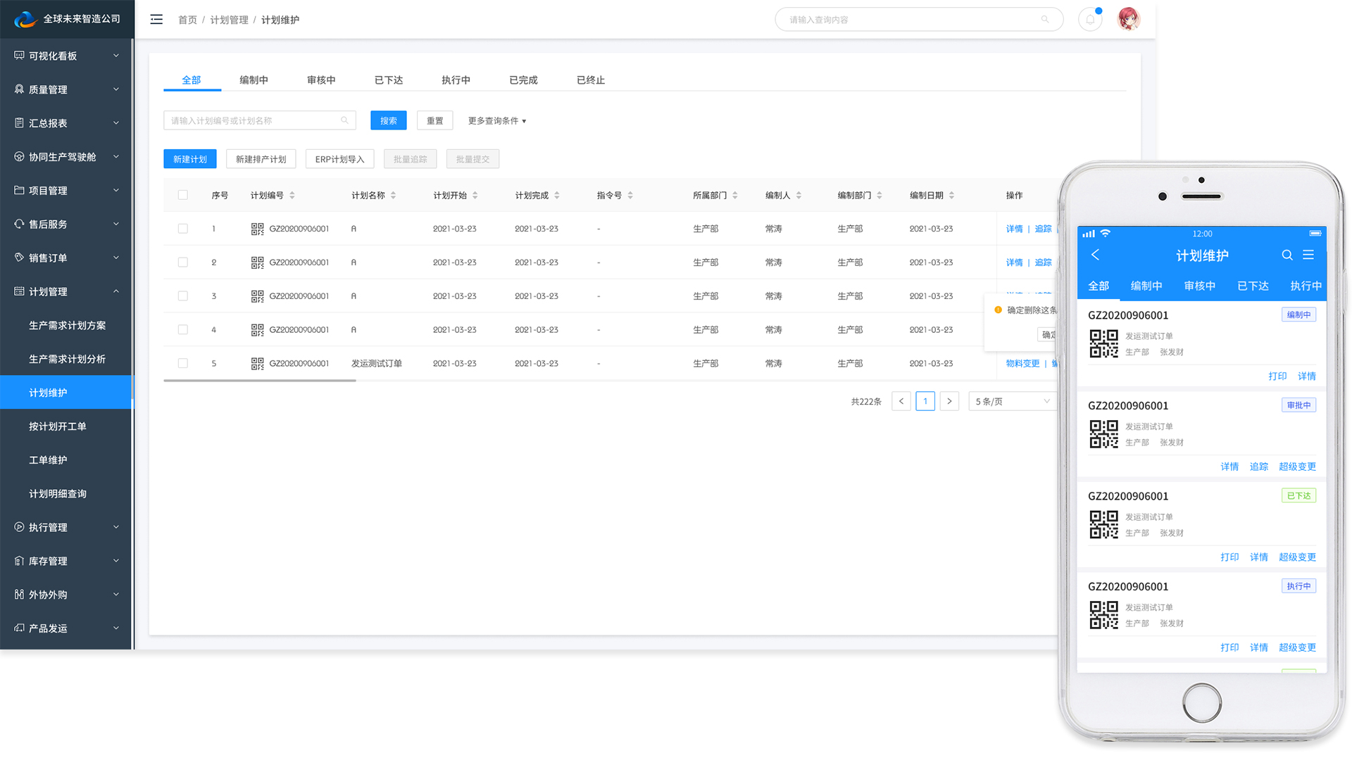 ■ 实时查看生产计划,调整生产任务